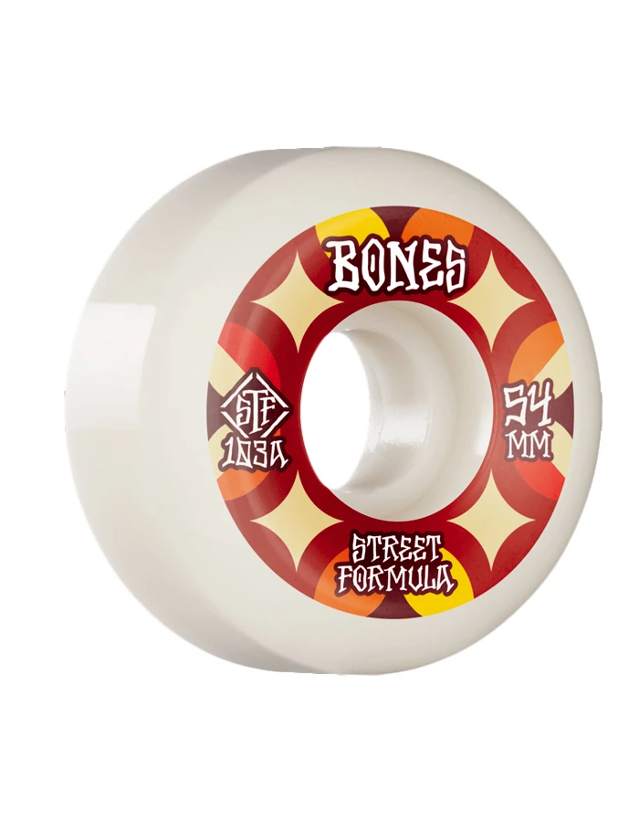Bones Street Tech Formula powers the legendary Bones STF wheels that roll fast, grip when you need to and slide when you want to, without flat spotting. STF gives you more control to skate with confidence. Bones STF wheels outperform all other wheels, and because they wear so well, they last several times longer than normal wheels, making STF wheels the best for less. Bones STF wheels are available in the original 103A and the new 99A Easy Streets™ for greater roll, control and softer landings on rougher terrain.