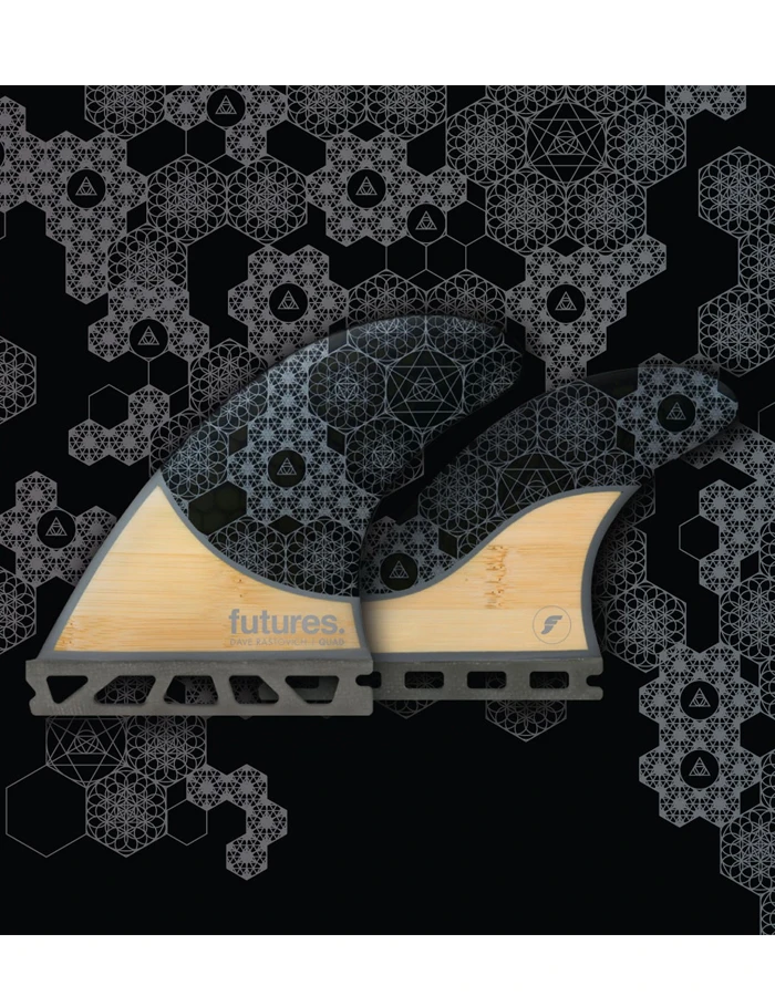 The Rasta Quad is freesurfing style master’s Dave Rastovich’s go-to Quad Setup in small-to-medium sized surf. The flex of the honeycomb material combined with a V2 foil on the front fins help to generate speed, while the relatively small rear fins provide release, giving this Quad a performance feel.