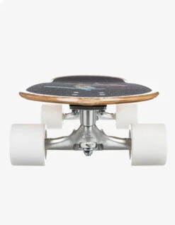 The Dealer in colour Cult of Freedom comes in size 30″ and is a 80’s flared cruiser with full rounded tail.. It is made of Resin-7 hard rock maple and it features Mellow concave with medium nose and tail kick with 5.25” Tensor Alloys and 60mm 80a Flatsider wheels. Also featuring Black griptape with print and Paint dipped deck. Custom art by Max Loeffler. Dimensions are 9.5” x 29.5” x 14.5”wb