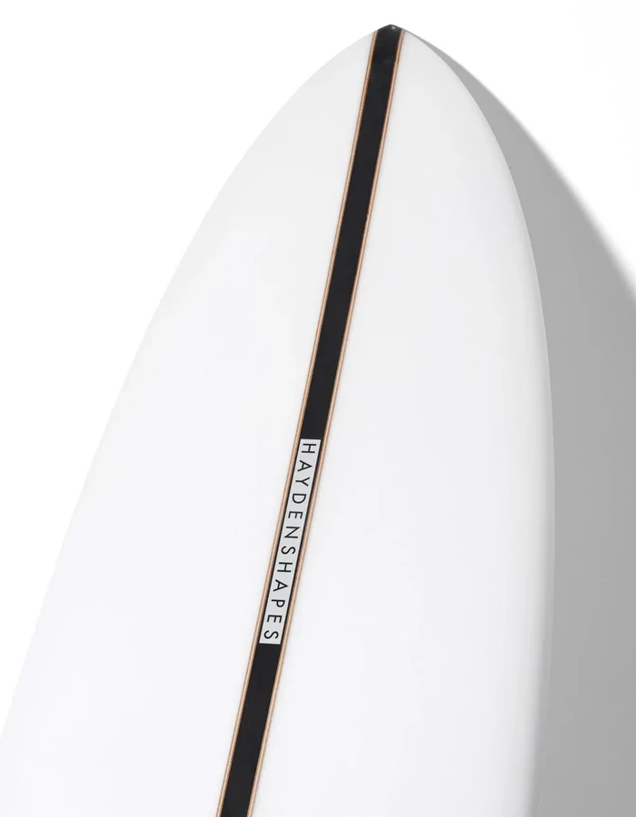 “This style of shape was a request from Craig earlier in 2020, to surf in average waves – as well as on the bigger days whilst being stuck at home. Its flatter rocker makes it a really great paddler; able to catch almost anything” – Hayden