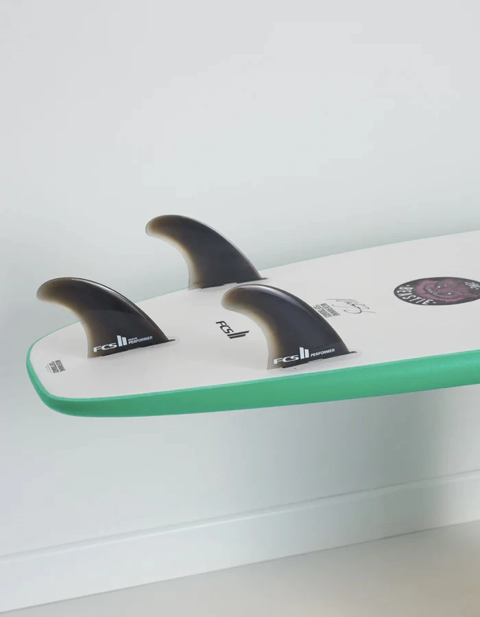 The Beastie has been designed to be the ultimate fun board. The volume is really well distributed for such a large board. The outline is generous, providing a stable platform for catching waves perfect for those looking to progress their surfing to the next level or for the surfer looking for an alternative to a longboard. The tail width provides lift and acceleration in the weakest waves creating a super generous sweet spot!