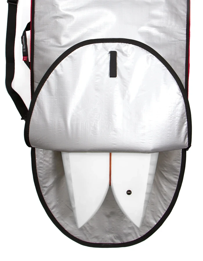 Thick, heavy duty outer fabric. Water proof, UV and stain resistant designed to reflect heat and protect boards.
